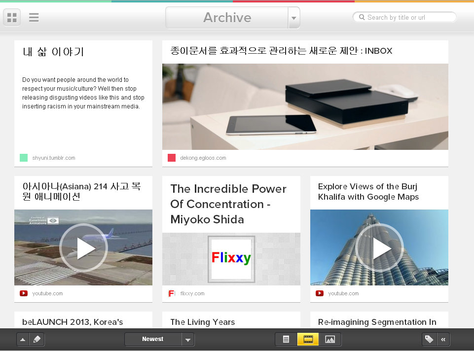 Archive 에서 다시 확인할수 있고, 글/영상/사진 종류별로도 구분해 볼 수 있다.
