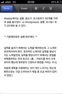 Weebly에서는 실행, 글쓰기, 포스팅하기 3단계를 거쳐야 글을 쓸수있다. vs WordPress는 실행, 포스팅+ 하기 2단계로 쓸 수 있다.