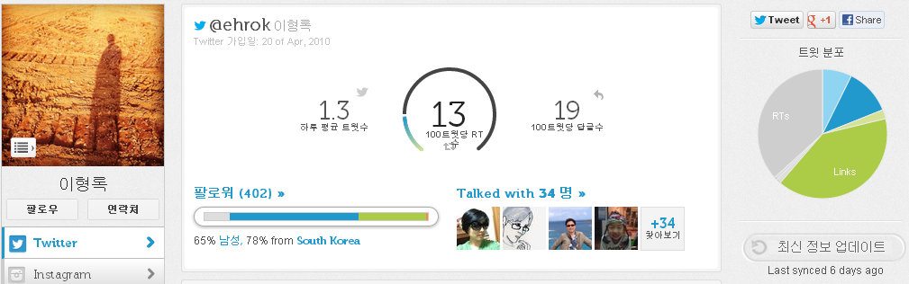 twtrland.com Posted on August 2, 2013August 2, 2013 by ehrok 트윗을 시간이 지나면 삭제하는 방식으로 써보고 있는데 역시나 흔적이 남아있는 곳이 있었다. 이형록, @ehrok | twtrland. 트위터 분석시 참고용으로 메모. 트위터 및 인스타그램 정보를 기본으로 다양한 분석을 제공한다.