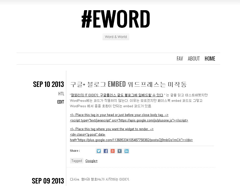 눈의 피로도를 줄이기 위해 어두운 색을 적용하고 다양한 주제를 한눈에 볼수 있도록 Visual 테마를 적용했었다( Visual Theme @WordPressdotcom | #eWord). 기분전환을 위해 밝은색 적용(Chunk Theme — WordPress Themes for Blogs at WordPress.com).