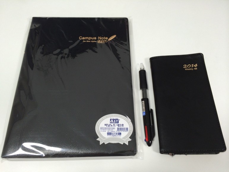 Workshop Gifts Posted on June 17, 2014June 17, 2014 by ehrok 워크샵 선물로 구상해본 아이템들 사용자가 나중에도 쉽게, 저가로 구매할 수 있는 항목들로 구성했다. 노트, 4색펜, 수첩 노트와 수첩은 양지사 제품이고, 볼펜은 모닝글로리 제품이다.
