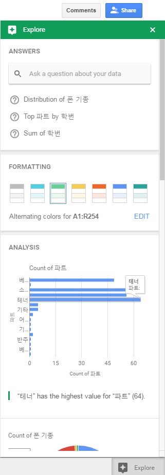 구글문서도 아래처럼 자동완성,분석을 제공하고 있다.