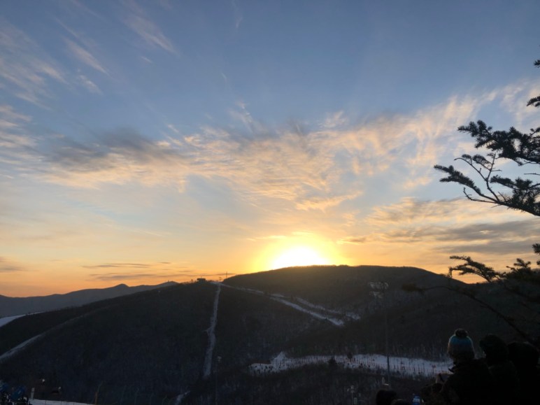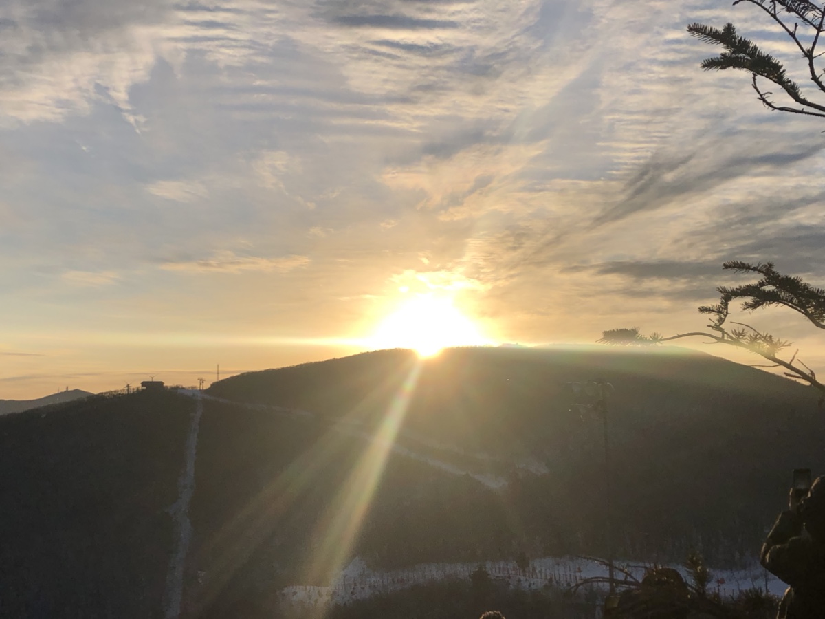 강원도에서 새해를 맞이하기는 처음이었다. 새해맞이 이벤트가 있다고 해서 하이원 스키장 곤돌라에 일출을 맞이하러 나왔다. 2층에서는 떡국을 나누고 있었으며, 7시에 오픈한 곤돌라를 타고 20분을 가서 정상에 도착. 1200 고지정도 되려나. 하이원스키장에 위치한 곤돌라 정상 하이원탑에서 7시 57분에 일출을 맞이할 수 있었다.