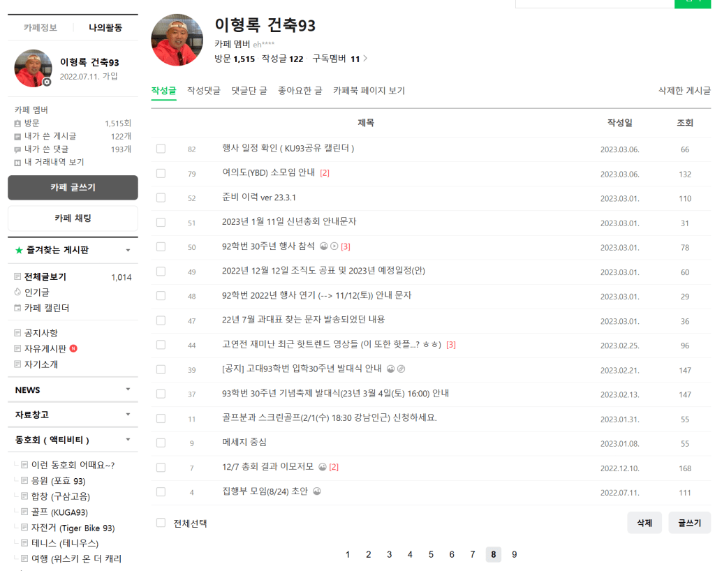 행사 준비하느라 카페에 주로 글을 썼네요. 외부 비공개 카페가 되어 좀 아쉬움.
