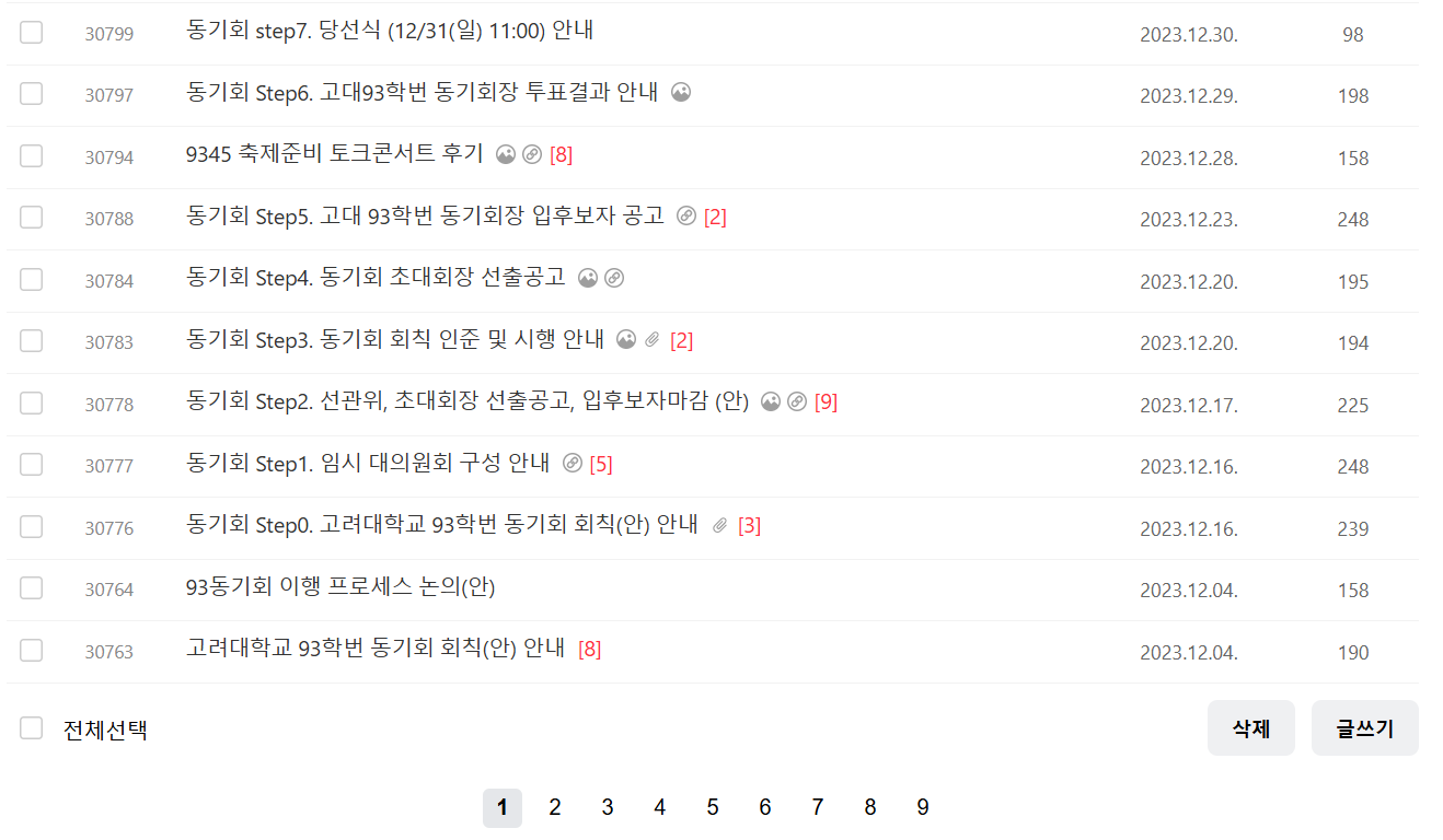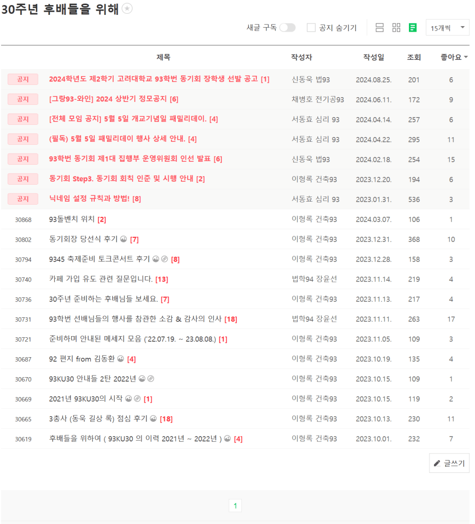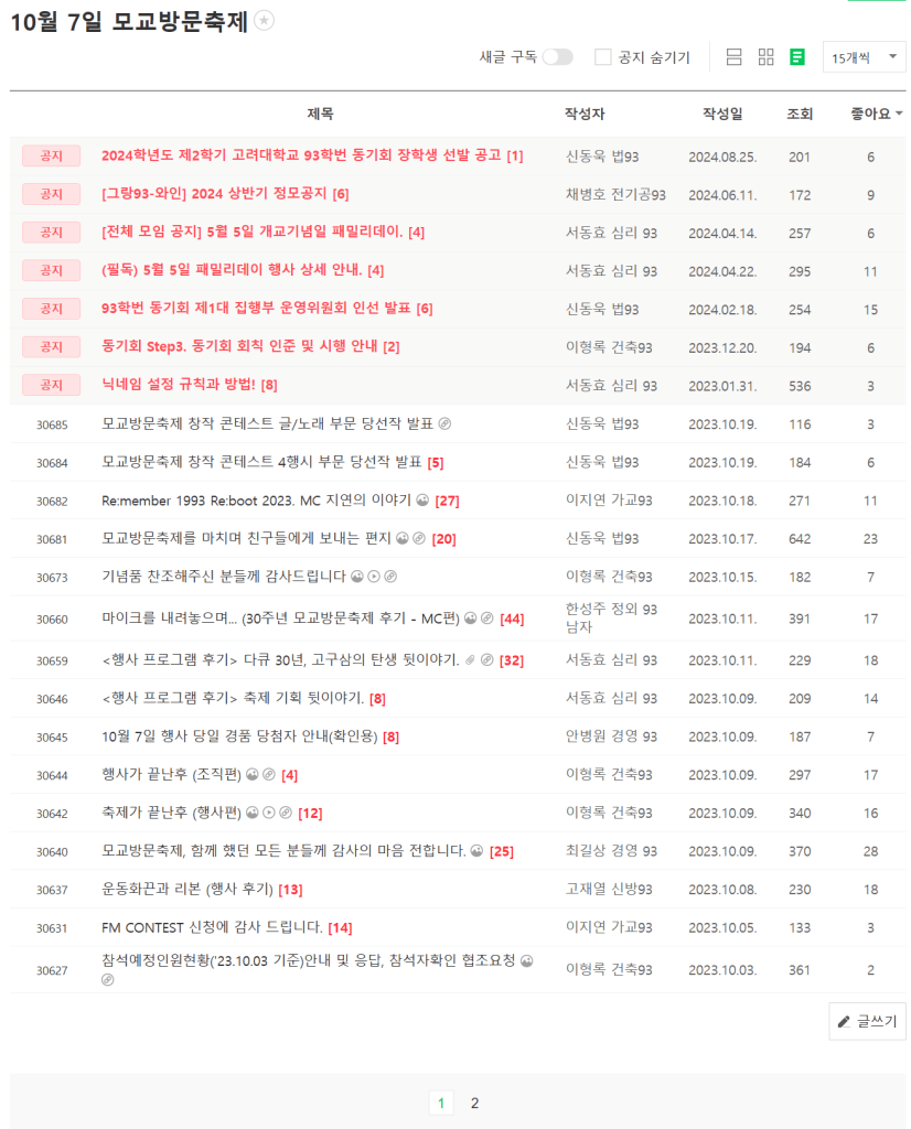 행사 메인 게시판 (마치고 난 후 글들 제목/ 공지사항에도 글들)
