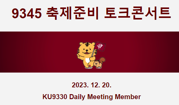 더 많은 93을 모을까도 생각해봤지만, 시간이 길어질수도 있어서 (여기 게시판에 공개글로 남겨주시면 후배들에게 두고두고 도움이 될겁니다.) 축제전 2달간 매일 아침에 30분씩 (30분이 넘어간 적도 많았어요. 본업에 지장될까봐 무조건 30분 지나면 마치자고 약속) Daily meeting 했던 동욱, 록, 길상, 영동 함께 했네요.