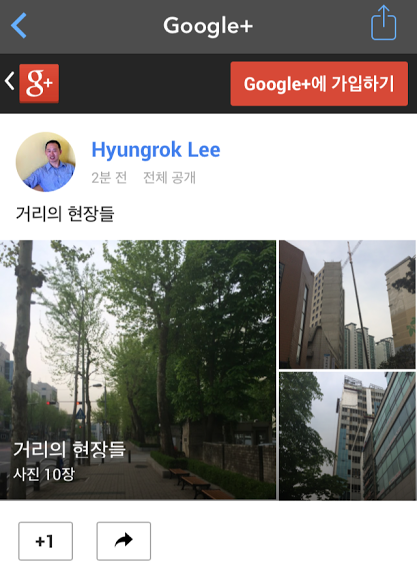 구글플러스(google+)는 모두 계정이 하나씩 있다. 정작 본인이 모르는게 문제인데. 안드로이드폰을 쓰면 gmail 계정을 하나씩 만들기 때문이다. 그 비밀번호를 잊지 않게 관리하는 것이 중요하다. 쓰지는 않더라도 알고는 있다면 언젠가 쓰임이 있을때가 있다. 구글+ 에서는 사진을 관리하기가 좋다. 자동백업 (설정Tip:통신비를 위해 wifi 지역에서 동기화, 무제한 용량활용을 위해 full size 백업해제) 되면서 주요사진을 선별해서 일기 대신 활용이 가능하다. 최근 구글스토리기능도 나와서 여행다녀온 사진을 잡지앨범처럼 자동으로 만들어준다. 가끔 여러장의 사진을 gif로 만들어줘서 예상못한 즐거움을 주기도 한다.