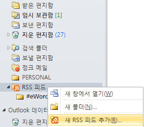 Outlook에서도 rss 구독이 가능하다. 블로그별 RSS 주소.