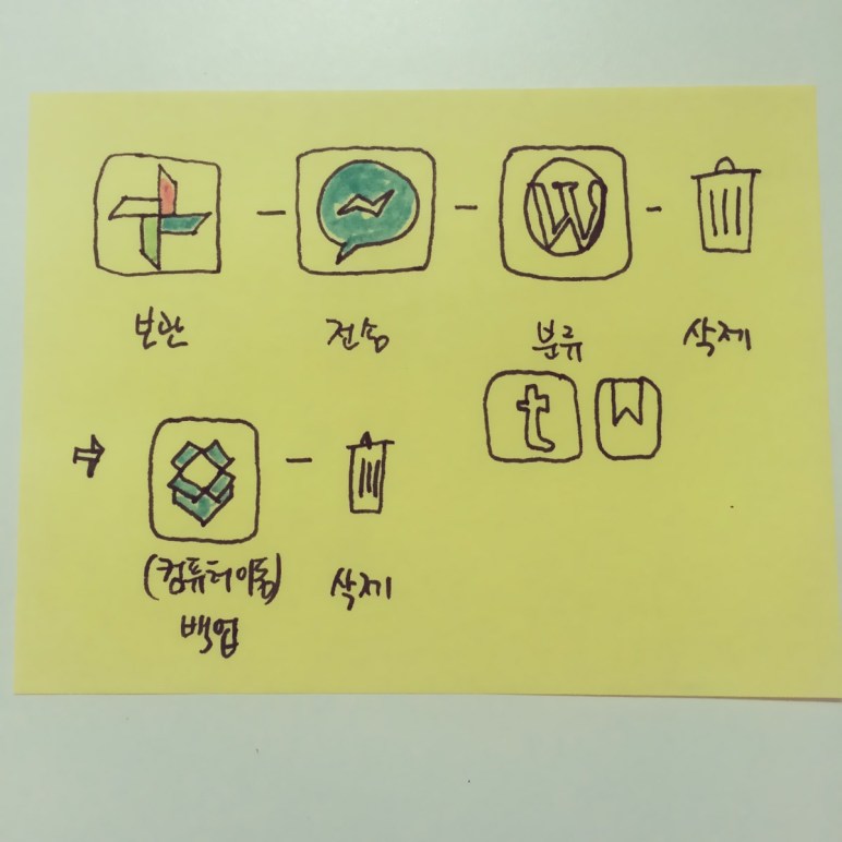 스마트폰에서 사진은 최대한 없애는 편이다. 내가 생각하는 가장 효과적인 정리는 스마트폰이 어느순간 없어져도 지장없을때다. Routine은 보관-전송-분류-삭제-백업-비우기